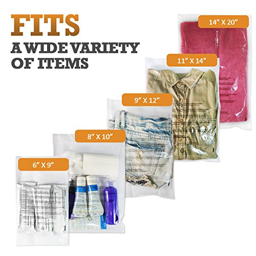 Komodo Clear Self Seal Poly Bags, 1.5 Mil, Resealable I Size Option: 6x9 8x10 9x12 11x14 14x20 I Suffocation Warning in 7 Language for International and USA Seller (11" X 14", 100 Count)