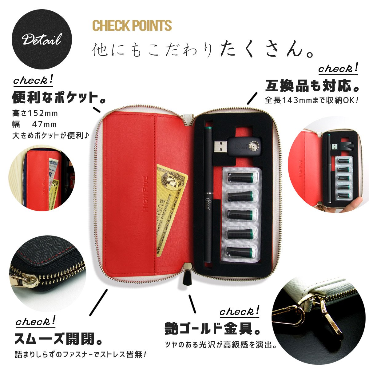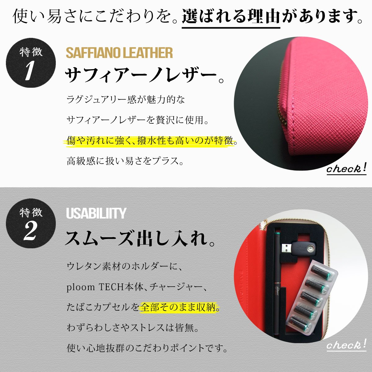 In all-in-one ploomTECH case of notebook type, the luxurious feel unique to saffi leather is firmly shining.