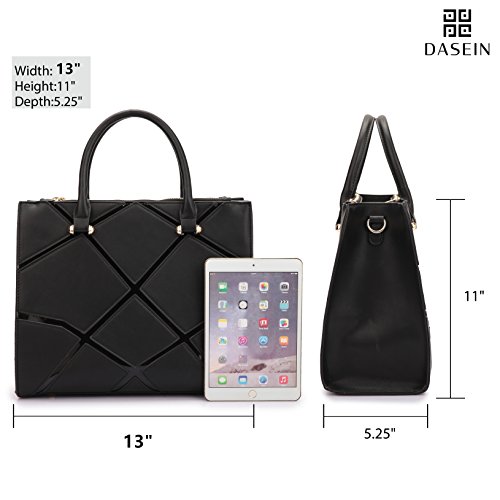 -. Feature : ★ MEASURES(TWO CHOICE TOTE & SATCHEL): Tote Bag: 17"x11"x6.25" inches. - Medium size satchel briefcase: 13"x11"x5.25" inches. Both come with a 48" end-to-end removable shoulder strap. The large tote bag is a great size for laptop, tablet, small bag, ipad, books, files, work papers, etc. The medium satchel is a great size as a satchel purse, work purse, medium briefcase, fashion handbag. / ★ FASHION DESIGN: Patent leather is a timeless fashion trend. This two designer handbags mix this fashion element with smooth high quality calf PU leather. Shiny patent cross the classic vegan eco-friendly leather skin. Catch everyone's eyes with it. / ★ MATERIAL: Crafted from high quality PU calf textured leather and patent leather. No chemical smells and 100% eco-friendly. Hardware and hinges are metallic and golden - No plastic feeling. / ★ POCKETS AND CLOSURE: Multi-pockets could make your stuffs well organized. Fully-lined fabric interior with one back wall zipper pocket and two open top item pockets. / ★ EXCELLENT PACKAGE AND SHIPPING: One dust bag (which could be used as a shopping bag) and one dasein box or Amazon box. Seriously protect the leather from damage. Great gift idea for your friends, wife, parents or yourself. ✔ 100% NO RISK Money Back Guarantee;✔Ship from Los Angeles or Amazon Warehouse;✔FREE Standard Shipping In Contiguous United States;✔Find storefront of Dasein, more surP.R.Ises are waiting for you!