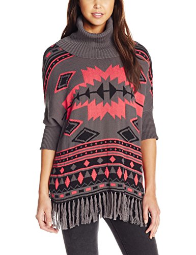 Aztec jacquard dolman cowl neck poncho sweater