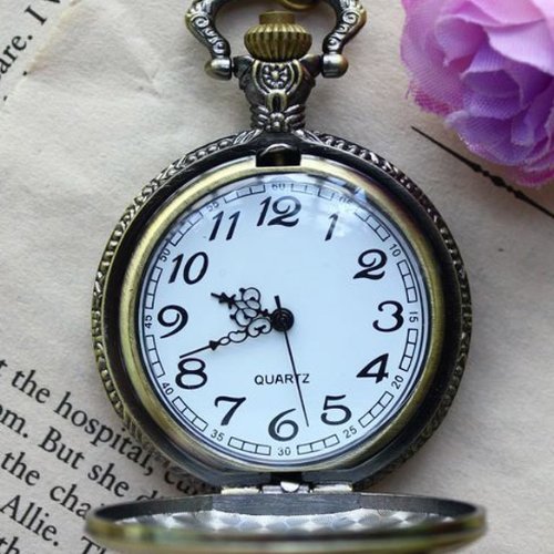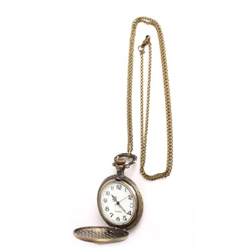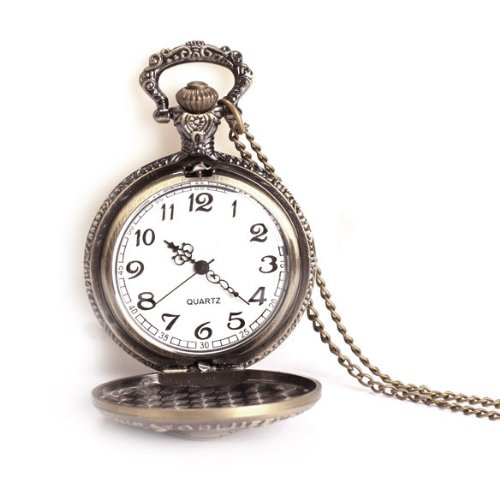 -. Feature : Vintage bronze pocket watch, easy to wear with the enough long chain / Precise quartz movement, long lifetime and professional made / Alloy bronze watch case with cool cross skull design / Suitable for girls and boys; Men and Women