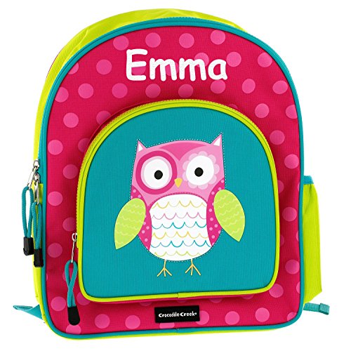 -. Brand : Crocodile Creek -. Color : Red -. Department : boys -. EAN : 0842044102049 -. Feature : Personalized with the name of your choice on this adorable Whimsical Owl backpack. / High-quality, sturdy backpacks are a perfect fit for younger children to take to school, camp, or vacation. / Backpacks are approximately 11.5"W X 14" H / Cushioned adjustable straps and, of course, the name of your choice! Comes with a side pocket for easy access and storage. / Note: Items that are customized specifically for the customer (such as monograms, names, embroidery, etc.) are not eligible for a return. Please refer to the "Handmade at Amazon" section of the Amazon Return Policy for more info. -. ProductGroup : Apparel -. ProductTypeName : LAGE -. Size : Medium -. Title : Personalized Crocodile Creek Kids Whimsical Owl School or Travel Backpack - 14 Inches -. UPC : 842044102049