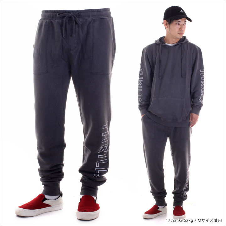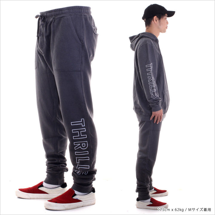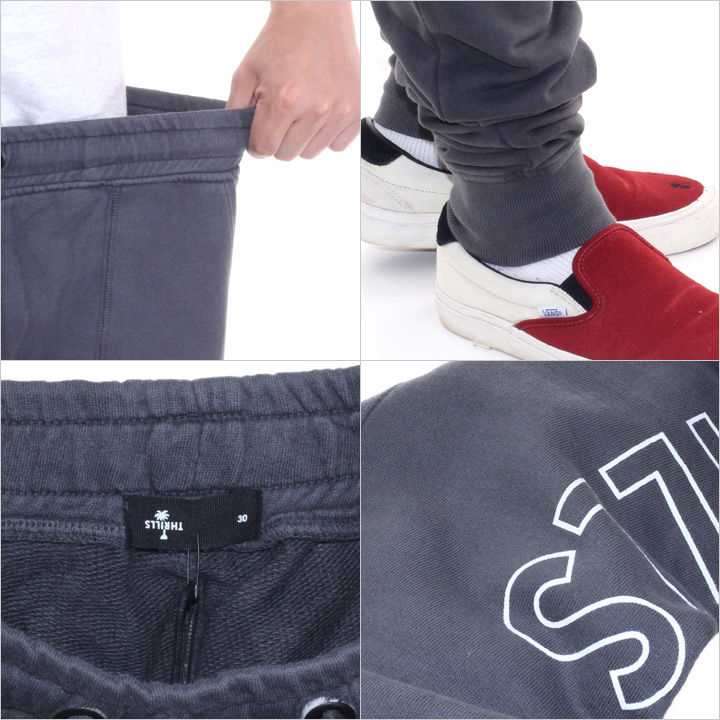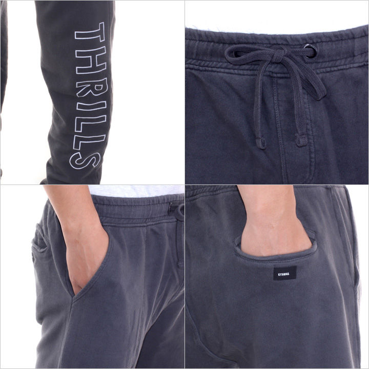 サイドにアウトラインで落とし込まれたTHRILLSのロゴがポイントのスウェットパンツ。