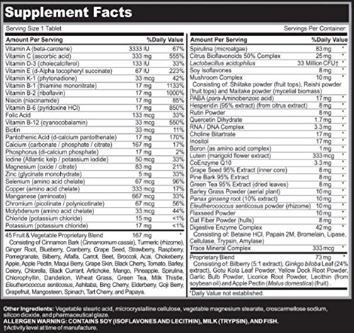 INCREASE ENERGY & IMPROVE PERFORMANCE NATURALLY: All natural multivitamin with the highest overall nutrition values in each serving for more vitamin C, vitamin B12, vitamin B6, vitamin D, Biotin, and additional natural vitamins your body needs for energy and performance. This is the Best Multivitamin for men and women compared to other daily multivitamins because it delivers more nutrition.