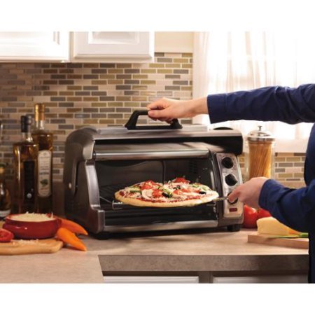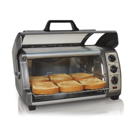 Studio : Hamilton Beach31126 Publisher : Hamilton Beach31126 Product Description Two-in-one appliances for toasting, baking and more. The Hamilton Beach Easy Reach Toaster Oven can help you in countless ways around the kitchen - all while saving space and time. Toast, bake, broil or roast, and you'll be thrilled with the results, as well as the way these convenient ovens suit your busy lifestyle. With a spacious interior, the Easy Reach Toaster Oven can accommodate the foods your family makes most: after-school snacks, toast, frozen pizzas or homemade meals. With bake, broil and toast settings, a 30-minute timer, and two rack position settings, you can make whatever you like, from French fries to dinner rolls. The Easy Reach Toaster Oven easily holds four slices of bread, so you can make toast multiple slices at once. The crumb tray slides out from the front for easy removal and cleanup. Easy Access, Easy Reach, Easy Cleanup. Toaster ovens are incredibly convenient appliances and are great for toasting, reheating and baking. Unfortunately, most of them do not have enough interior space, are hard to clean and make it difficult to reach the food inside. Until now. The Easy Reach Toaster Oven from Hamilton Beach solves all these problems with a unique roll-top door. It frees up working space on your counter because it lifts up, not down, making it easy to reach inside to remove hot food. Best of all, the roll-top door is completely removable, so you can easily clean up messes inside the oven or on the door itself. - Product Feature Benefits: - Includes removable crumb tray, bake pan and broil rack - Bake, Broil and Toast Settings so you can prepare a variety of foods - Fits 12" pizza or 6 slices of toast - 6 slice capacity - Roll-top door - increases workspace, visibility, and access to oven - Includes bake pan and broil rack with two rack positions - Removable crumb tray 0