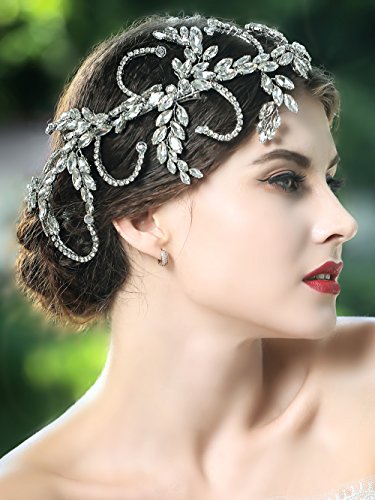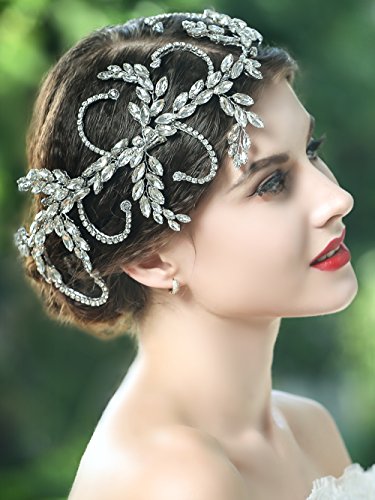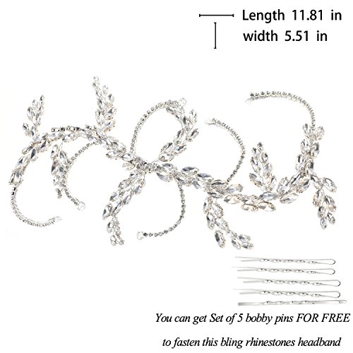 Yean Wedding Headband Bling Rhinestones Bridal Hair Vine Accessories for Bride and Bridesmaid (Silver)