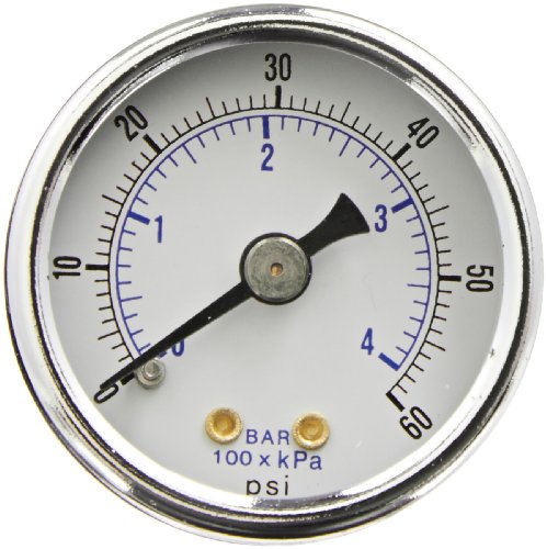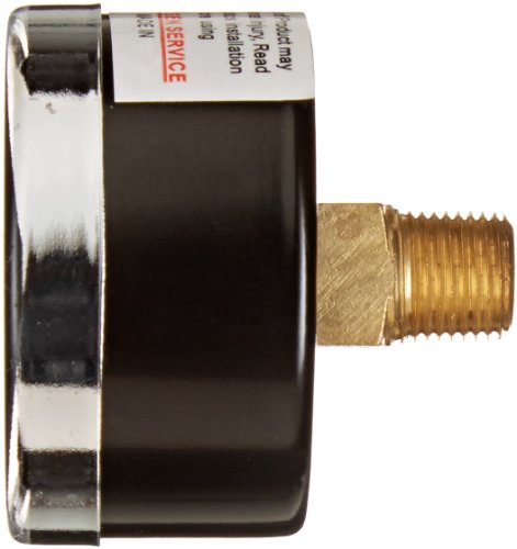 PIC Gauge 102D-158D Dry Filled Utility Center Back Mount Pressure Gauge with Black Steel Case, Chrome Bezel, Plastic Lens, 1-1/2" Dial Size, 1/8" Male NPT Connection Size, 0/60 psi Range