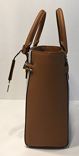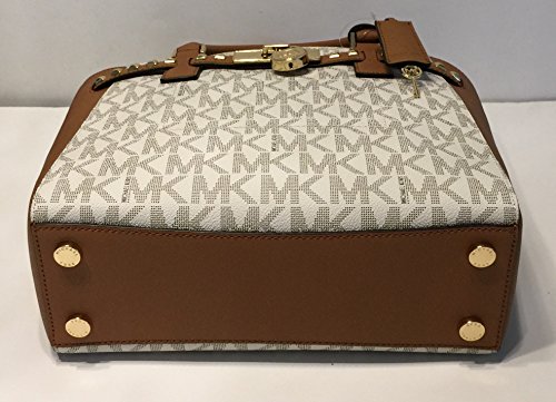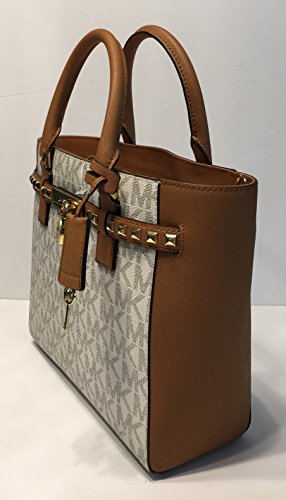 -. Feature : MICHAEL Hamilton Traveler LG TZ Tote Signature Vanilla MK/Acorn / Top Zip, Signature MK leather, Top handle and shoulder strap, Saffiano Ballet Pink Leather accents / Interior : 1 main compartment, 4 slip pockets, 1 zip secure pocket. / Exterior hidden slip pockets both in front, Signature lining. Exterior:back hidden slip pocket , mk locker and key. / Measures Approximately: 6"L double handles; 13"X9.5"X5" with adjustable and detachable chain-detail strap