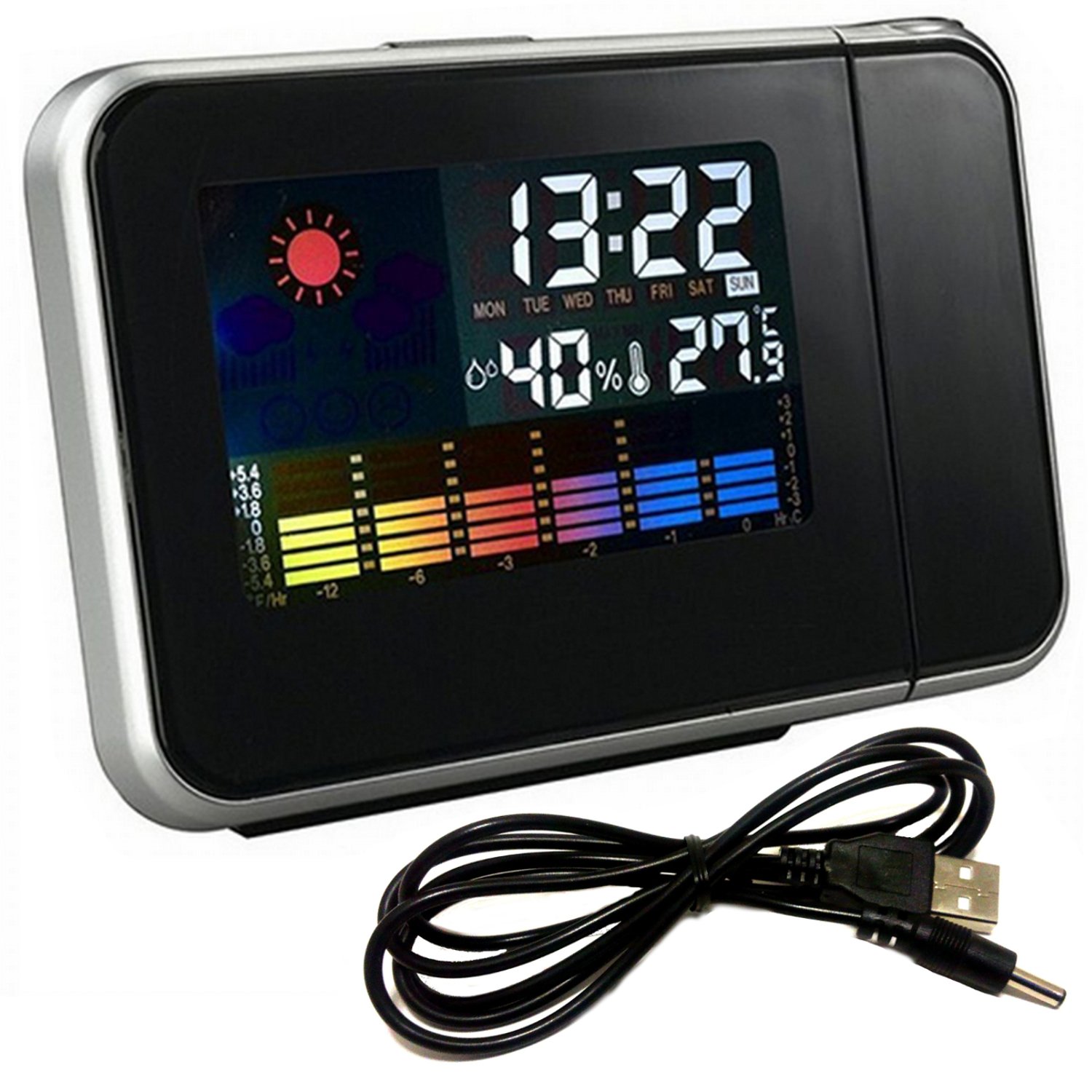 USB set projector Place Clock LED temperature humidity weather forecast manual with