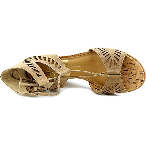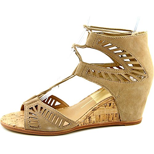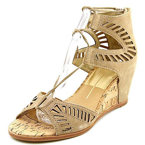 Product DescriptionGeometric perforations update these suede Dolce Vita sandals. Lace-up ties with metallic aglets. Partially covered cork wedge. Synthetic sole.0