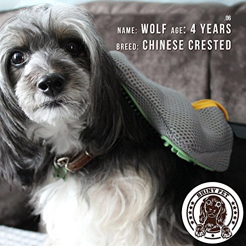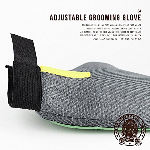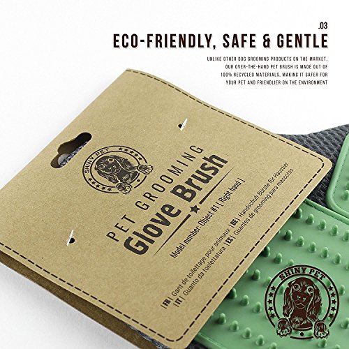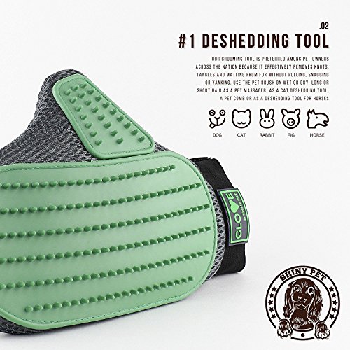 Studio : SHINY PET Publisher : SHINY PET Binding : Misc. Product Description Whether you are looking for the BEST dog brush, cat brush or horse gloves, look no further. Your search for the perfect pet brush glove officially ends here. Our team is entirely committed to providing top quality dog grooming products, horse grooming products and cat grooming supplies as well as the highest level of customer service. This is why we are proud to introduce the newest addition to our collection of pet grooming supplies. Meet The #1 PET GROOMING GLOVE BRUSH. Crafted out of recycled mesh materials, fitted with soft rubber tips and finished with an adjustable strap, this dog grooming gloves makes animal grooming easier and safer than ever before. The rubber tips loosen matted or knotted hair and massage your pet's skin, while the breathable mesh material keeps your hand comfy while your groom your pet to perfection. Not only can this grooming gloves be used as a brush for cats, a gloves for dogs or horse brush, it can also be used as a pet massager or shower brush. Since it can safely detangle either WET or DRY hair of any length, the pet deshedding glove is commonly used when bathing dogs, cats and other pets such as horses and bunny rabbits. Pets also love when their owners stroke their fur with this pet grooming gloves on as it soothes, relaxes and gently massages. Why should YOU choose our dog deshedding glove? - It is made out of RECYCLED materials. - It has an ADJUSTABLE STRAP. - It is SAFE GENTLE enough for all pets. - It can be used on WET or DRY pet hair. - It is WASHABLE. - It DRIES QUICKLY. - It is preferred by mobile dog grooming experts. - It makes a great gift idea for pet owners. Well, what could you possibly be waiting for? It's time to simplify grooming time. Go ahead - Click 'ADD TO CART' to order your own pet grooming glove today! 0