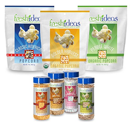 Fresh Ideas Family Pak-Pebble White, Classic American and Golden Harvest Kernels with Sriracha Ranch, Hard Toffee, Birthday Cake and Garlic Rosemary...