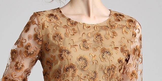 パーティーやお呼ばれに使える、花柄シフォンレースを重ねたワンピースです。