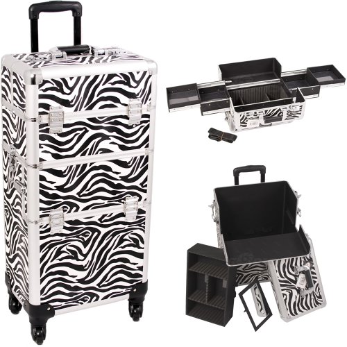 Sunrise I3161ZBWH Zebra4-Wheelprofessionalrollingaluminumcosmeticmakeupcraftstorageorganizercaseandeasy-Slidetrays-I3161
