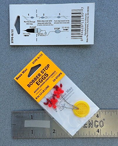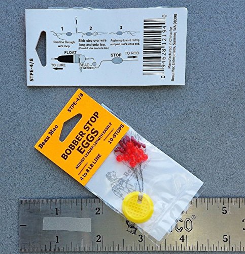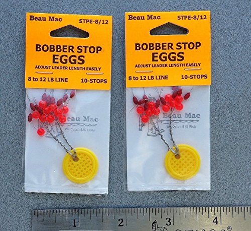 -. Binding : Misc. -. Brand : Beau Mac -. Feature : Two Packs Beau Mac BOBBER STOP EGGS / 2 packs of 10 "EGGS" (You get 20 Stops) / Use to "Stop" the sliding bobber on your fishing line / Adjust your leader length very easily -. IsAutographed : 0 -. IsMemorabilia : 0 -. Label : Beau Mac -. Manufacturer : Beau Mac -. PackageQuantity : 2 -. ProductGroup : Sports -. ProductTypeName : SPORTING_GOODS -. Publisher : Beau Mac -. Studio : Beau Mac -. Title : Two Packs Beau Mac Bobber Stop Eggs
