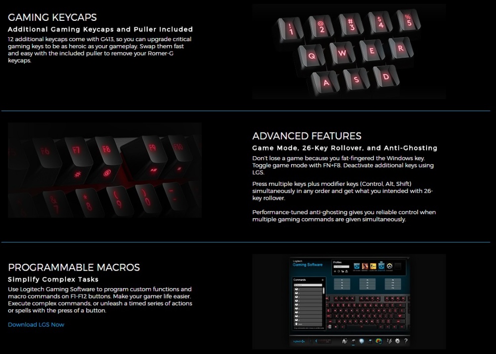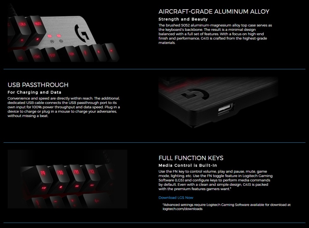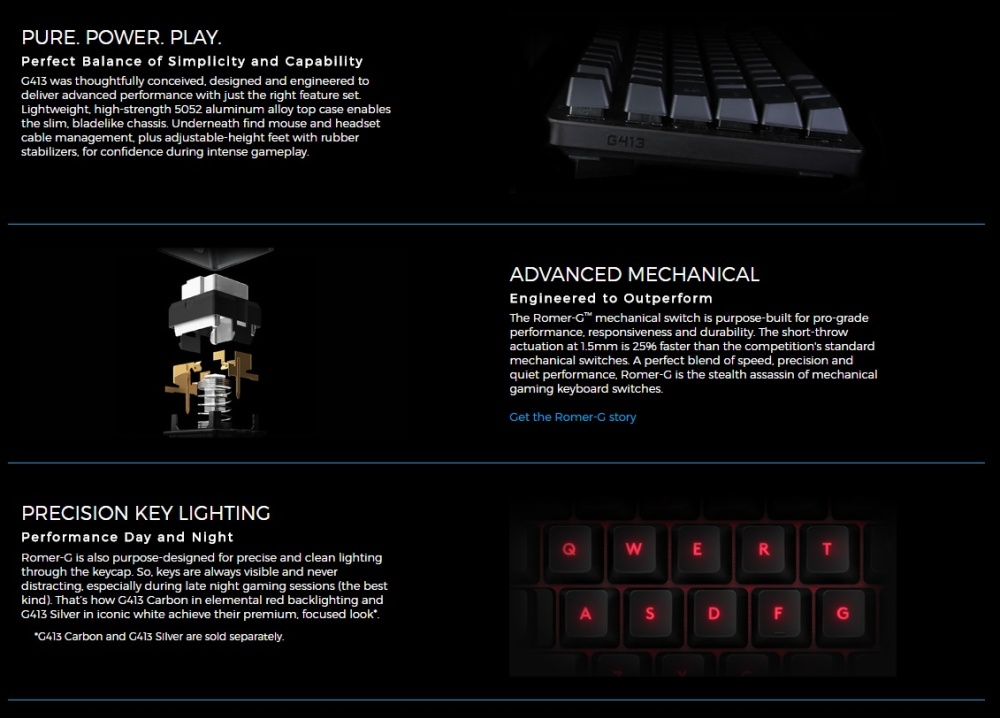 Logitech G413 Carbon Mechanical Backlit Gaming Keyboard (920-008313)