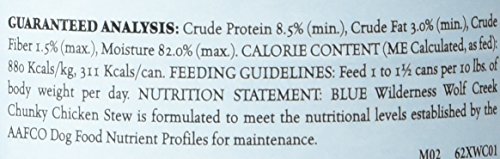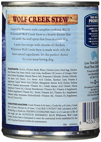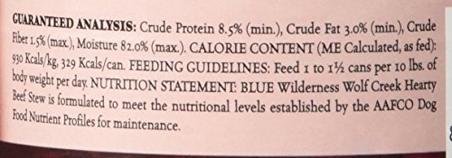 -. Binding : Misc. -. Brand : BLUE Wilderness -. Label : BLUE Wilderness -. Manufacturer : BLUE Wilderness -. PackageQuantity : 1 -. ProductGroup : Pet Products -. ProductTypeName : PET_SUPPLIES -. Publisher : BLUE Wilderness -. Studio : BLUE Wilderness -. Title : BLUE Wilderness Wolf Creek Stew High Protein Grain Free Wet Dog Food