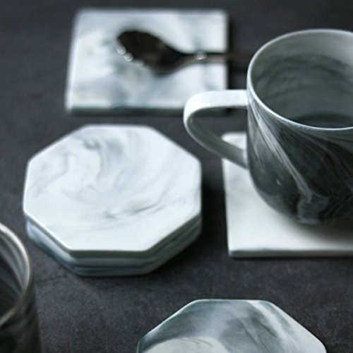 -. Feature : OUTSTANDING APPEARANCE: Make your dinner table or bar stand out with these coasters. If you are tired of bland cup, this coaster set is the stylish, best choice! / FINEST MATERIAL AND DESIGN: Each one has a unique pattern. Because a completely symmetric coaster set would be boring! / EASY TO CLEAN: No dust or residue involved, and you can/should easily clean any drops or spills off the coasters regularly with a simple damp cloth! / SAFE GUARANTEED: Safe for kitchen and dining purposes. / SATISFACTION GUARANTEED: We are confident you will love the coaster set. Perfect gift for birthdays, anniversaries, house-warming and festive occasions.