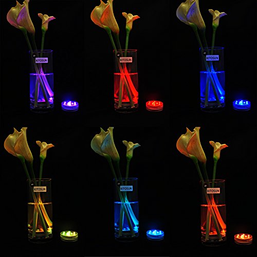 Do you need a decorative light in water? Are you craving splendor lighting accent and effect at your party? Kitosun Water Light is your ideal choice! The RGB Submersible lights are powered by three AAA batteries. The creative LED lights are made of high quality waterproof materials and could be used underwater. Working with an IR remote controller, powered by one CR2032 battery.