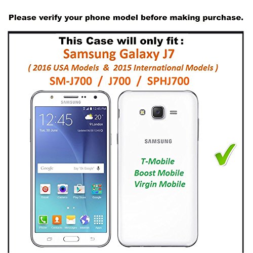 -. Feature : Compatible with: Samsung Galaxy J7 (J700), Model: SM-J700 / J700 / J700M / J700T / SPHJ700 (2016 USA Models & 2015 International models); (Case will fit carriers Boost Mobile, Virgin Mobile & T-Mobile) (***Please note this case will NOT fit 2016 International Samsung Galaxy J7 (J710) SM-J710 and other Samsung Galaxy J Series variants/models, for example Galaxy J3 & Galaxy J5) / Snap-on design, easy installation / Impact resistant & shock absorbent 2in1 protective case with built-in kickstand; precise cutouts allow full access to camera lens, microphone, charging port, and all other buttons / High quality design case shipped from USA / Phone is not included