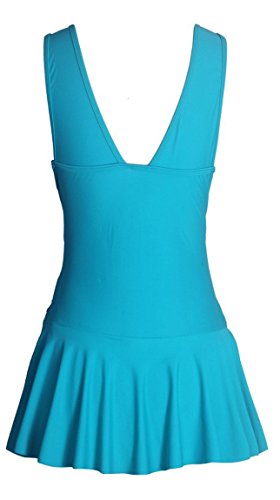 - Design: Elegant one piece flatting dress like swimwear design which is quite flattering and covers everything.