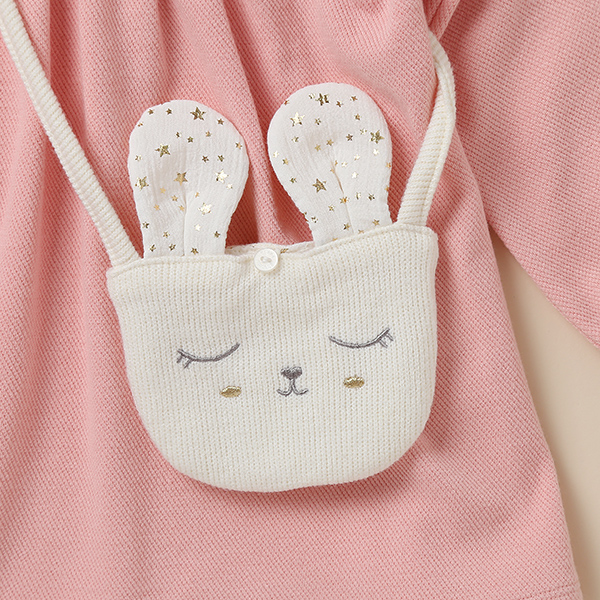 색감이 소프트하며 토끼모양 가방이 포인트인 원피스입니다