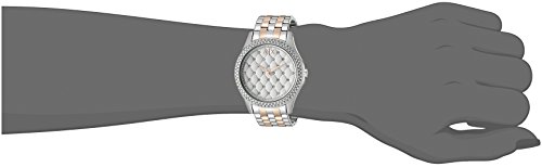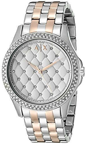 A two-tone silver-tone and rose gold-tone bracelet and quilted dial accented with sparkling pave crystals adds a luxurious feel to this silver-tone Armani Exchange watch.