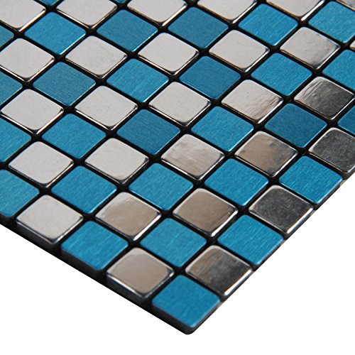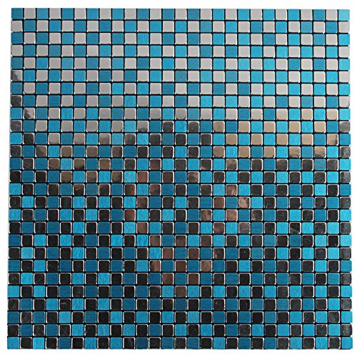 Royllent Modern Matel Aluminum Mosaic Bursh Type Peel&Stick Tiles Kitchen Decoration Backsplash Accent wall Tv&Sofa Background Bathroom Wall 1 Sq.ft Sea Nets (Blue)