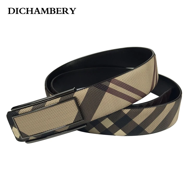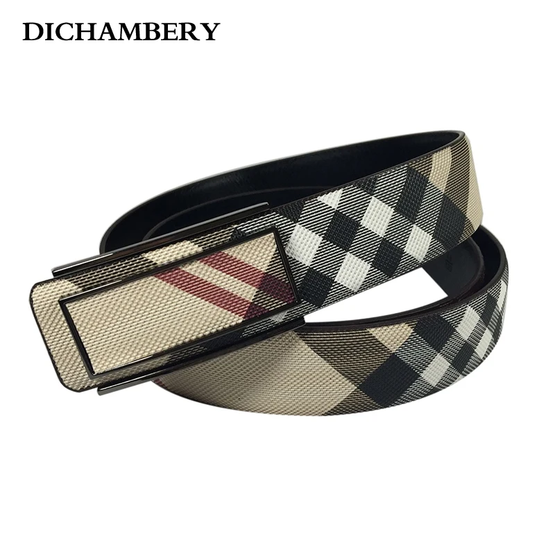 Pattern Type: Plaid Belt Buckle Material: Alloy Engaging Way: Smooth Buckle Belt Color: Khaki / Beige / Dark Brown Material: Genuine Leather Belt Length: 105/110/115/120/125 CM