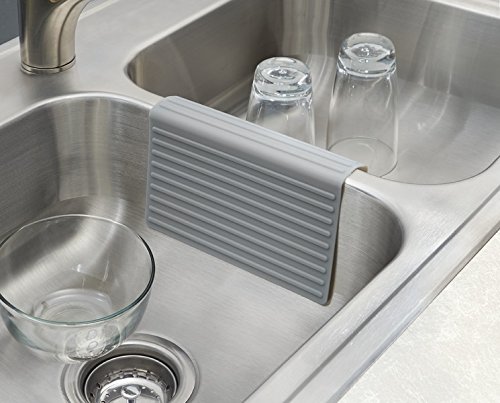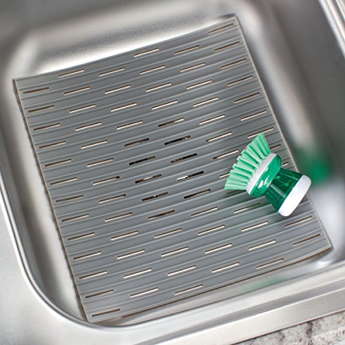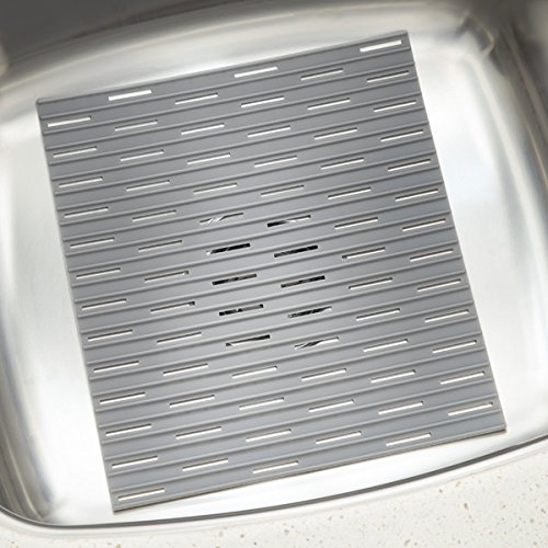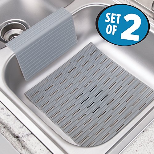 mDesign Silicone Kitchen Sink Mat and Sink Divider Protector - Set of 2, Gray