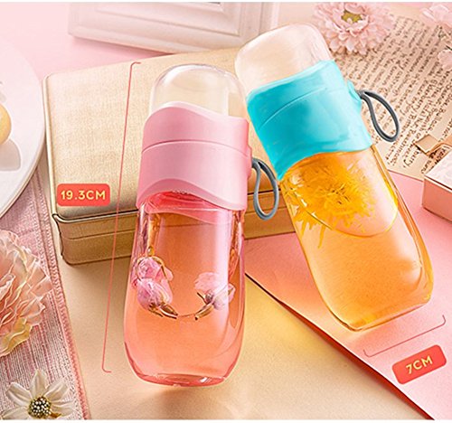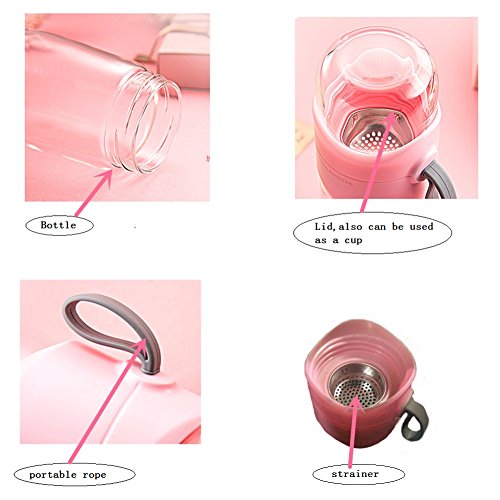 Drinking Glass Water Bottle Tea Infuser with Loose Leaf Tea Strainer Fruit Infuser for women girls with Strainer filter Protective Silicone Sleeve Portable Rope 11OZ(Pink)
