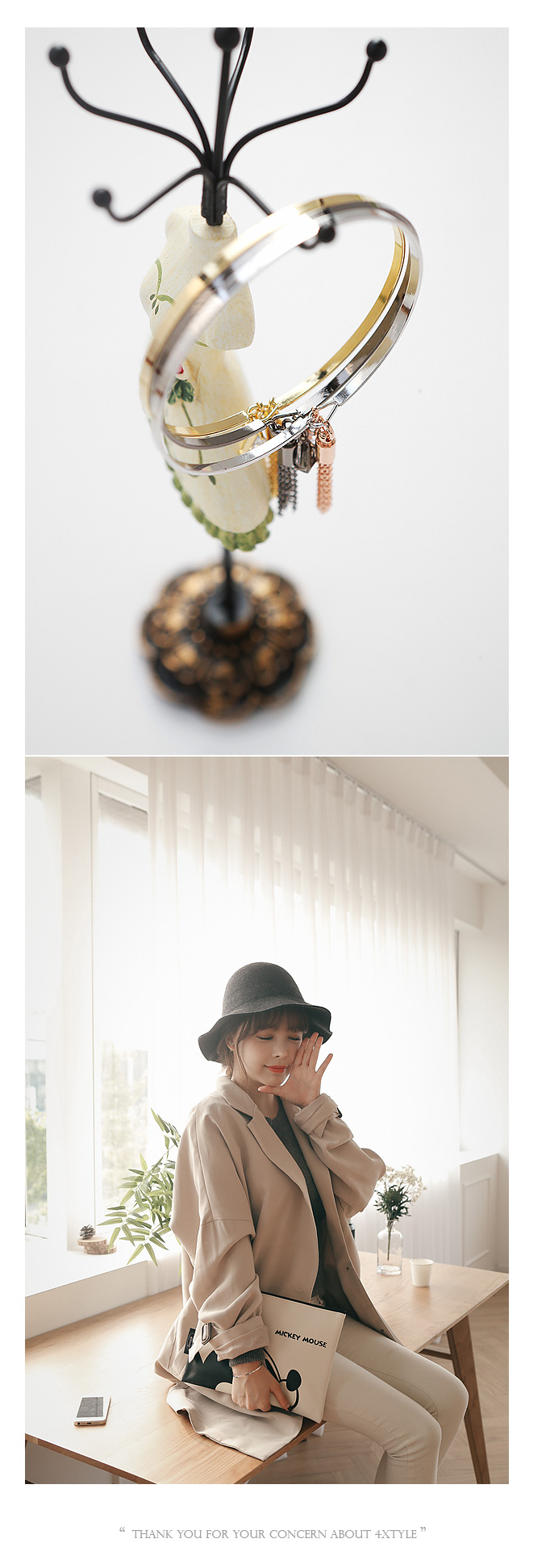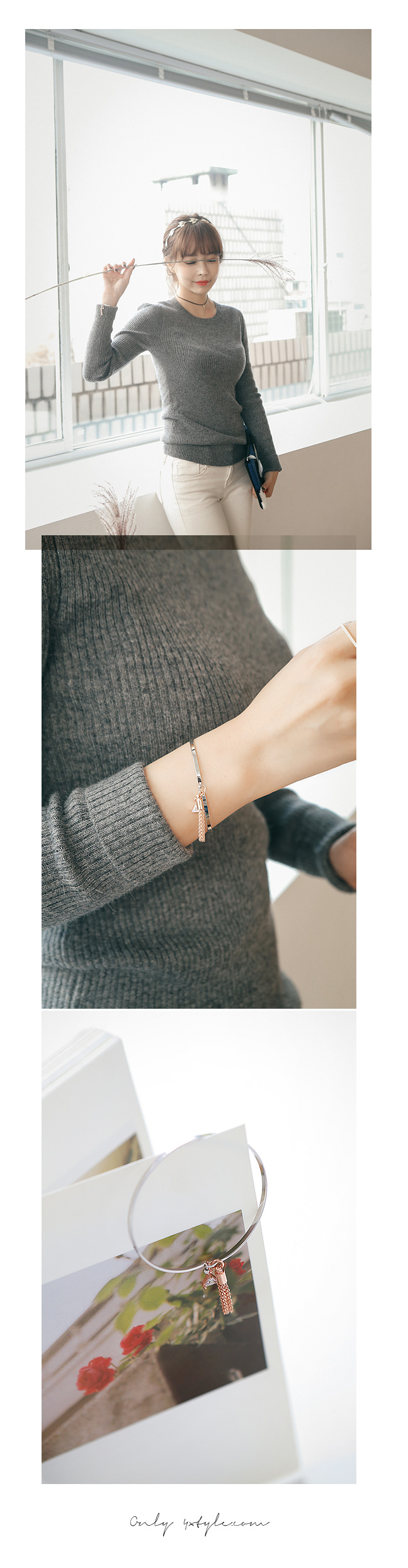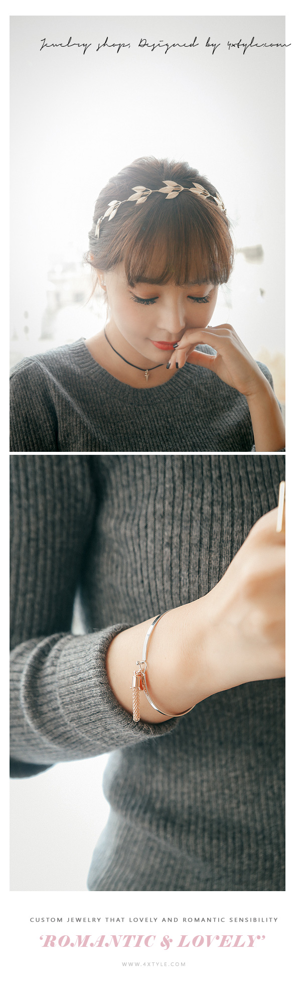 삼각의 반짝이는 큐빅 장식과 메탈 태슬이 트랜디 하면서도 시크함이 묻어나는 디라잇 뱅글 팔찌 입니다. 슬림한 라인과 깔끔한 컷팅이 매력적인 아이템으로 어느 스타일에나 매치가 가능한 소장가치 충분한 아이예요. 훅장식이 앞에 있는 디자인으로 착용하기 편하며 큐빅장식은 물림으로 셋팅되어 고급스러운 팔찌랍니다. 모던한 감성을 완성해주는 디라잇 뱅글 팔찌!
