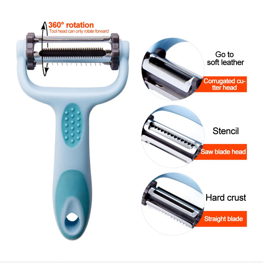 2. The design is only for the simple life, three kinds of stainless steel cutter heads, can handle most of the shaved skin, ordinary peeling, soft fruit shaved skin, planing wire.