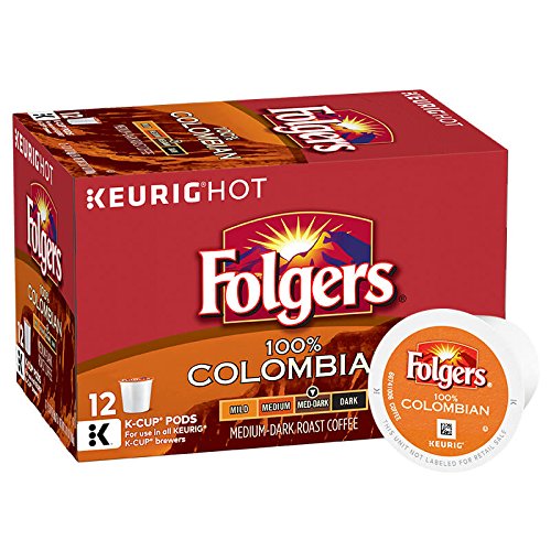 Folgers 100% Colombian Coffee, Medium-Dark Roast, K-Cup Pods for Keurig K-Cup Brewers, 12-Count (Pack of 6)