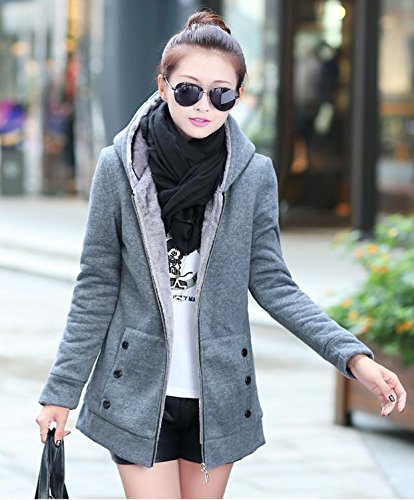 -. Title : (TERA Dream) ロング パーカー ボタン飾り スウェット カジュアル フード 裏地全面ボア 腰丈 ジャケット 保温 あったか Aライン 美シルエット レディース