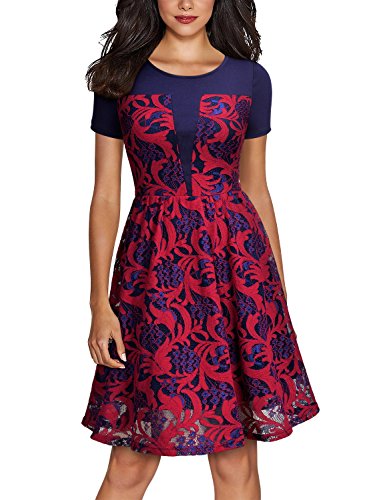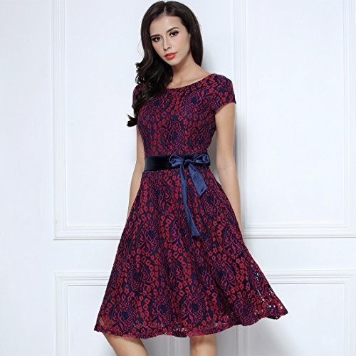 Women's Vintage Floral Lace Contrast Bow Cocktail Evening Dress