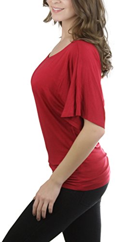 -. Feature : Soft lightweight cotton blend fabric. 95% Rayon, 5% spandex / Dolman/Batwing style blouse / Boat Neck Style / Banded bottom. / Variety of colors.