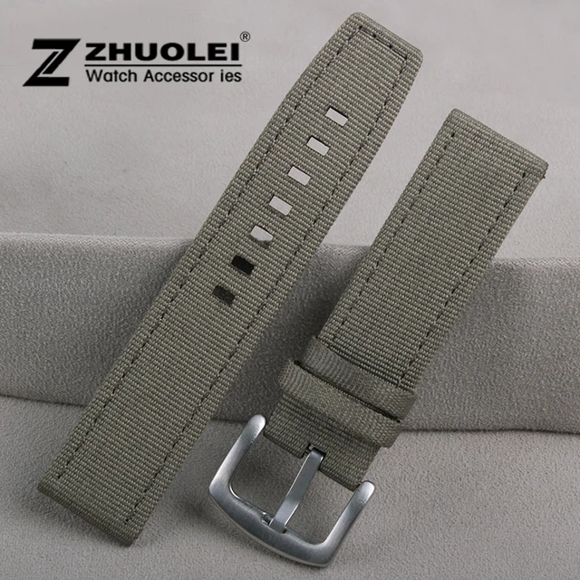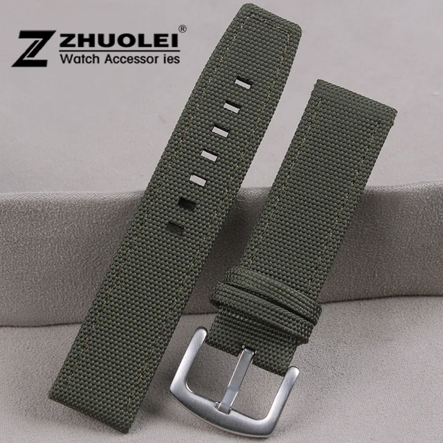 | [해외] 나일론 + 정품 가죽 시계 스트랩 망 22 미리메터 육군 녹색 perlon 시계 스트랩 손목 방수 나일론 시계 스트랩 |