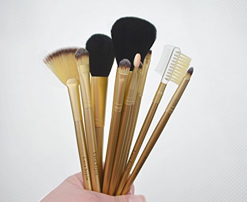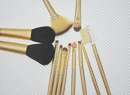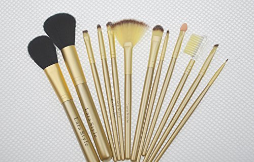 Lara Style 12pcs Gloden makeup Brush Set, include Face Brush, eye Brush, cheek Brush, brow Brush, lip Brush, with Leather Cae Bag