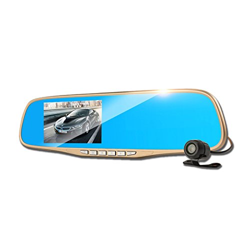 -. Title : Ehotchpotch Gold Full HD Dual Camera 1080P Rearview Car Recorder & Car Rear View Backup Camera, 4.3 inch Car DVR Mirror Monitor Reverse Parking System with Camera, G-sensor, Loop Recording