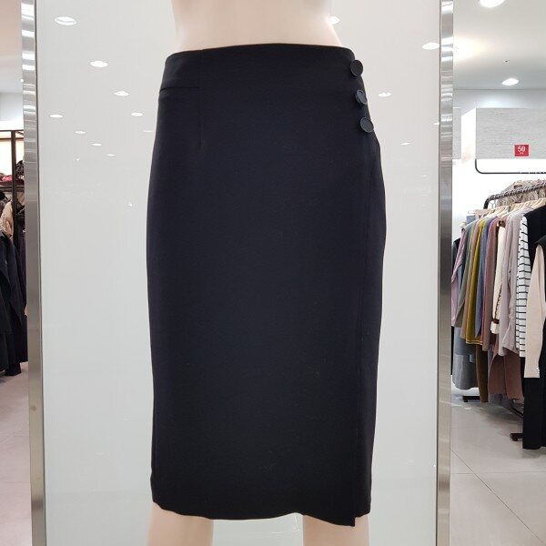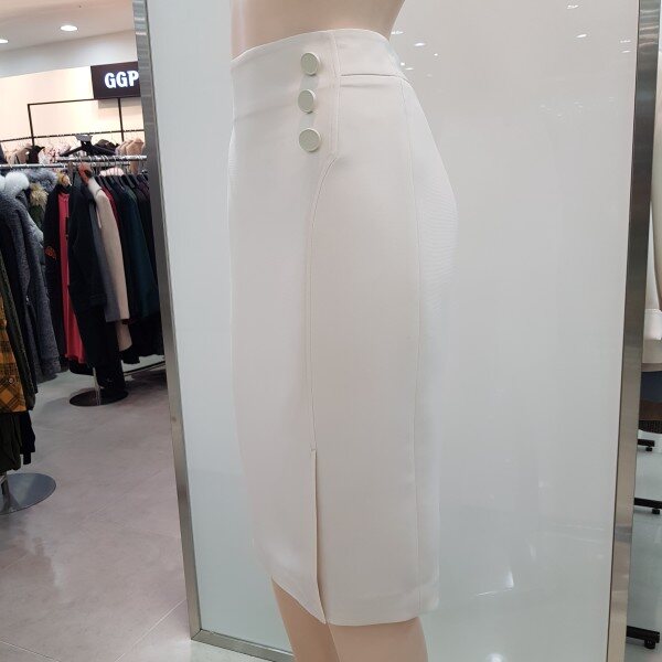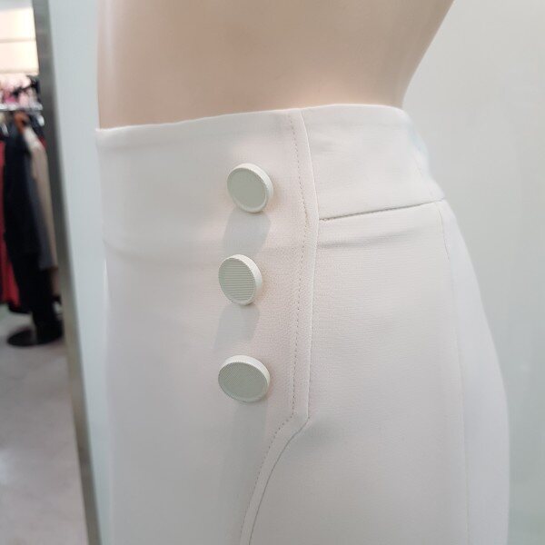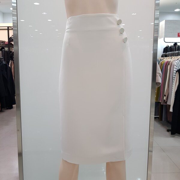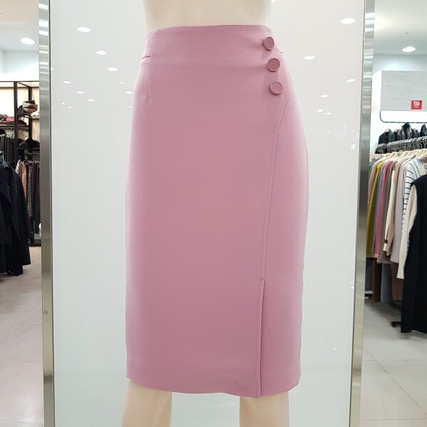 renoma ladies, 미니멀한 실루엣에 모던하면서 스타일리쉬한 감각을 살린 2018년 봄 정장 스커트 입니다 화사한 색과 다양한 아이템을 곁들어 코디하기 쉬운 스타일의 봄에 입기 쉬운 컬러입니다 옆 단추로 포인트를 준 유행을 타지 않는 심플한 H라인으로 티셔츠, 블라우스 어디든 매치하기 좋은 디자인입니다.