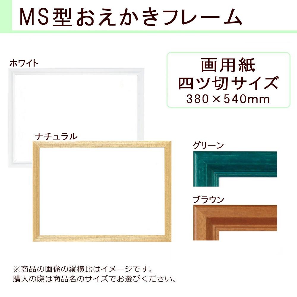 ナチュラルタイプの、画用紙専用フレームです。 製造国:日本 素材・材質:フレーム:木、前面:透明シート(PET) 重量:約1280g 仕様:規格:画用紙四ツ切(内寸:380×540mm) 付属品:紐 ※サプライヤー直送品 ご注文後13~17営業日後の出荷となります【商品名】A.P.J. MS型 おえかきフレーム 画用紙四ツ切サイズ(380×540mm) グリーン・0021714761