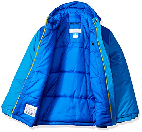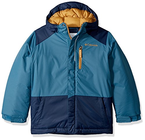 Columbia Infant and Toddler Size Chart Columbia Little Kids and Big Kids Size Chart Let boys be boys and not have to worry about them out in the cold winter weather. Regular Fit is an easy, lightly relaxed fit for comfortable range of motion. Omni-Tech™ Hydra Cloth 3000 shell:• Two-layer design with plainweave outer and waterproof membrane.• Waterproof and fully seam-sealed protection.• Breathable design allows passage of moisture-vapor from perspiration. Farenhot insulation:• Low-loft polyfill insulation provides warmth without bulk.• Crimped polyfill increases surface area to improve warmth retention.• 240 g/m² fabric weight. Attached, three-piece hood with brim. Snap-button storm flap over full-length zip. Long sleeves with adjustable, hook-and-loop tab cuffs. Zip hand pockets. Straight hemline. Reflective trim at the hood back improves low-light visibility. Smooth-faced, 210T taffeta lining glides easily over bottom layers. Body: 100% nylon;Lining: 100% nylon;Insulation: 100% polyester. Machine wash and tumble dry. Imported. Measurements: Length: 20 in Product measurements were taken using size XS (6-7 Little Kids). Please note that measurements may vary by size.Feature
