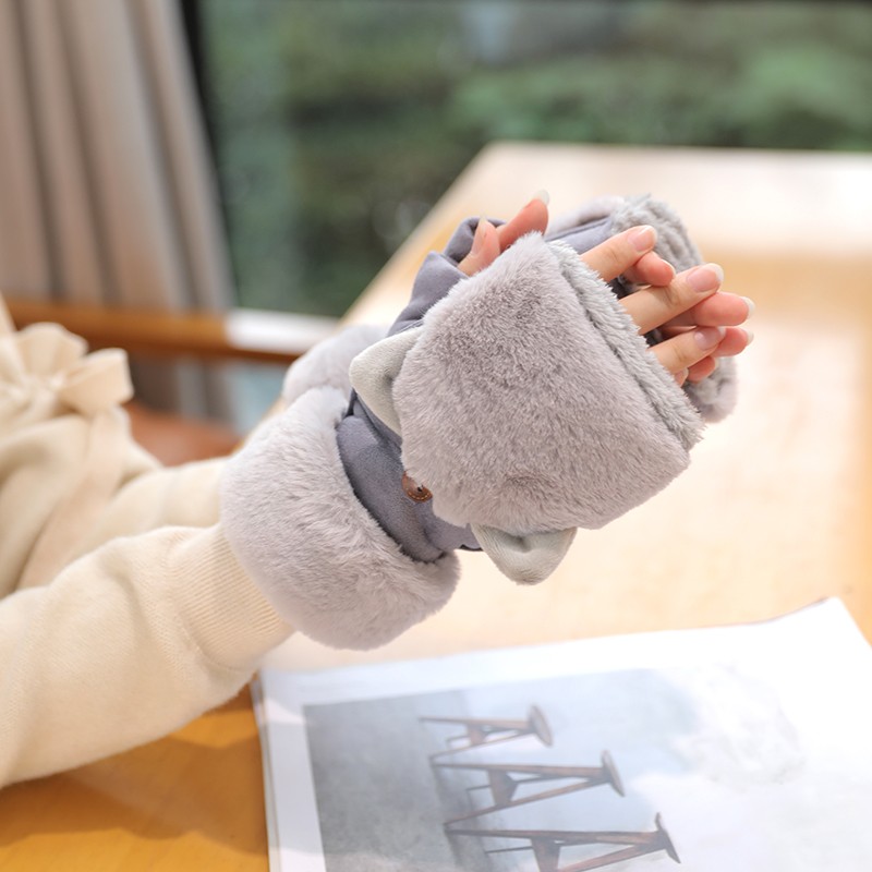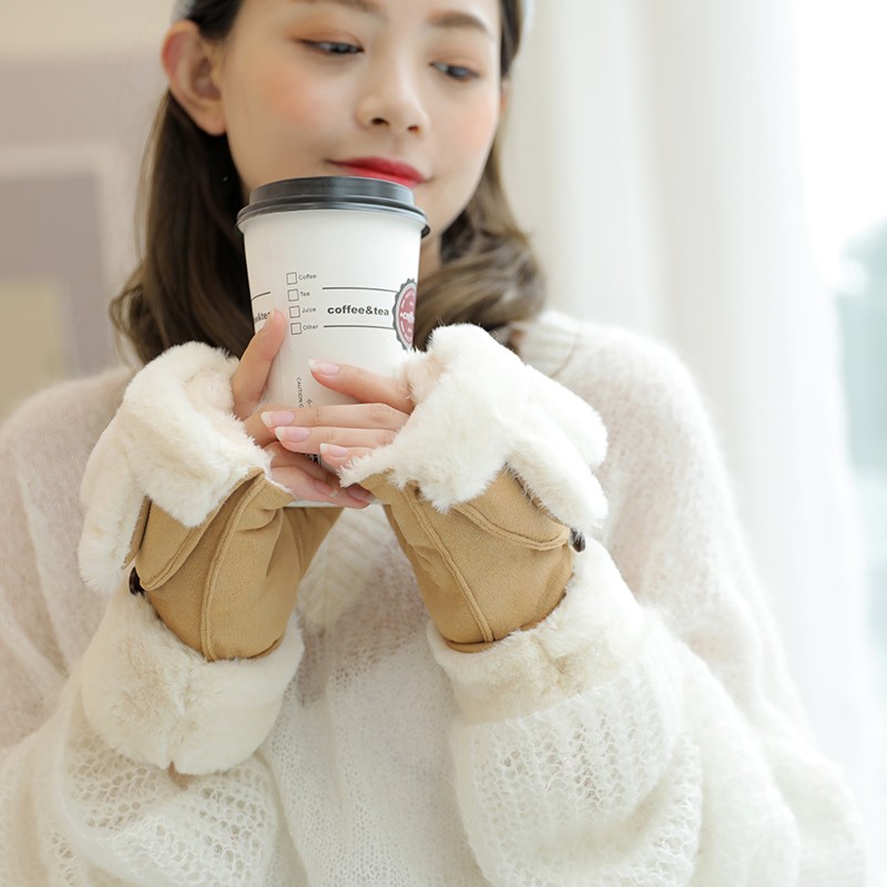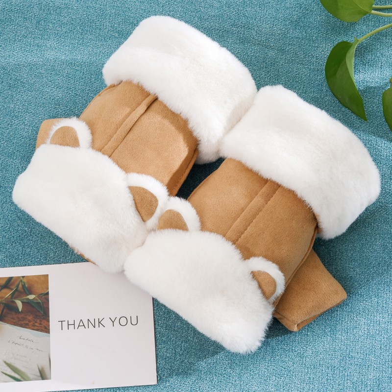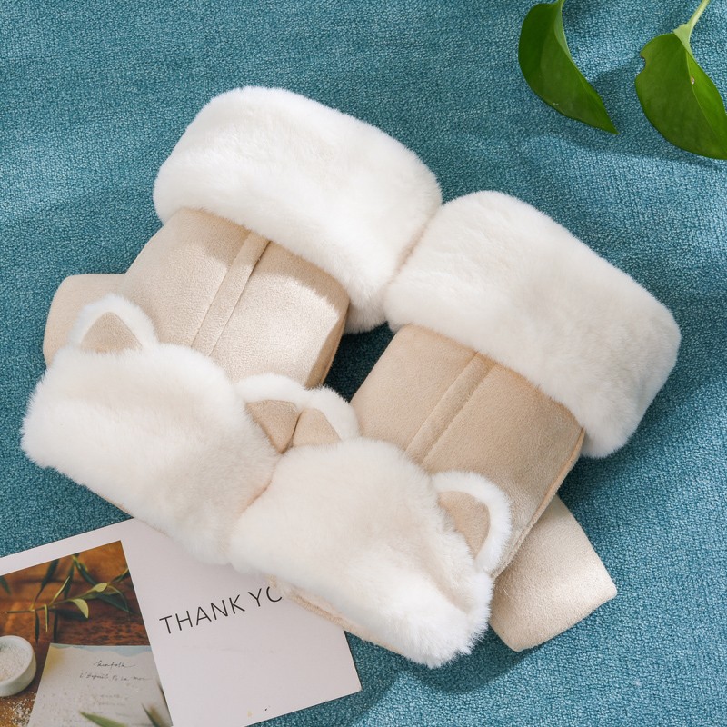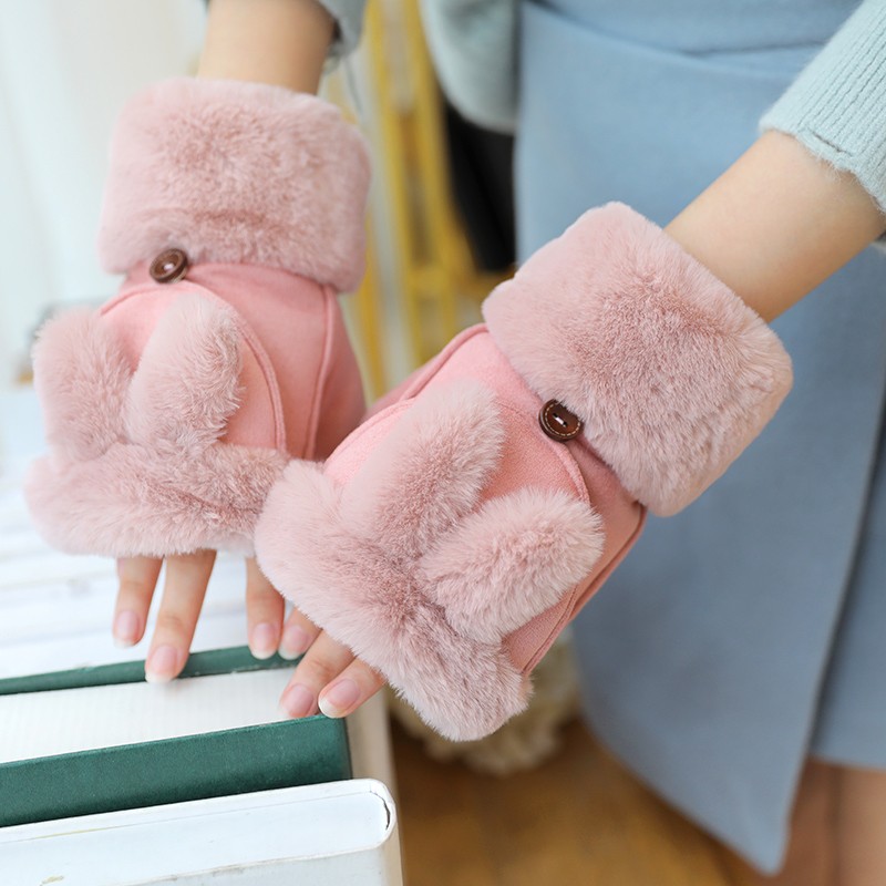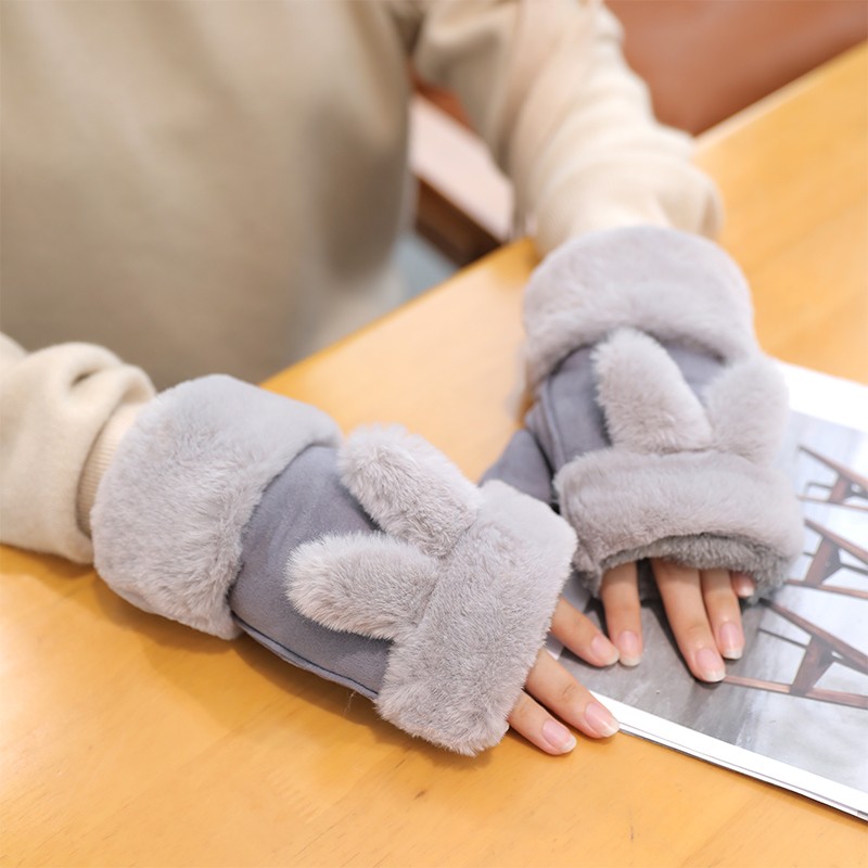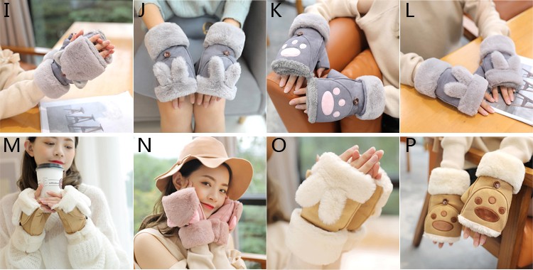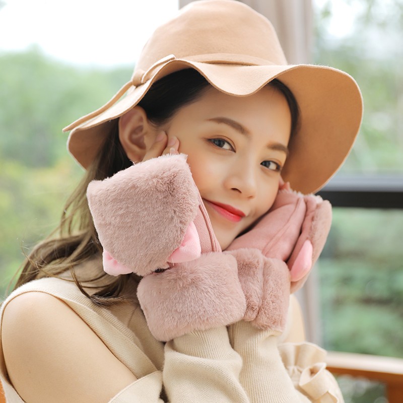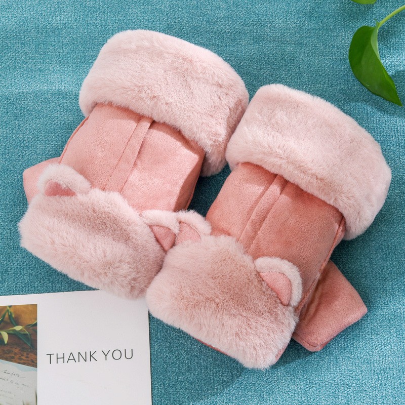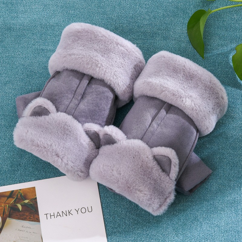 グローブ レディース 冬 スマホ対応 ふわふわ ウサギの耳 猫の耳 指切り手袋 厚手 暖かい 裏起毛 カワイイ 防寒対策 レディース手袋カラー:写真通り 16色