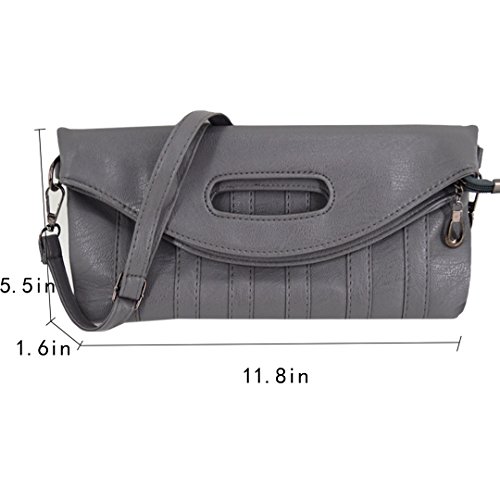 - Approximate Dimension: when folded, 11.8" x 5.5" x 1.6" (Length x Height x Depth). Right size and style. Compact design with roomy capacity for cell phone, wallet, makeups and other daily essetnials, please note the size before order.