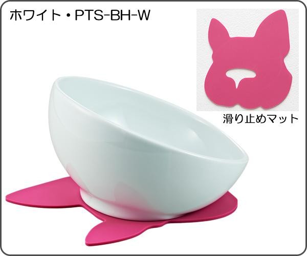 フレンチブルドッグ専門誌「BUHI」と共同研究を重ね辿り着いた形状です。フレンチブルドッグの顔がスッポリと入る大きさを確保しながら安定感も出しました。部屋を汚さないために「そり返し」をつけてフードがこぼれにくいように設計してあります。滑り止めマットもフレンチブルドッグ型です。 |