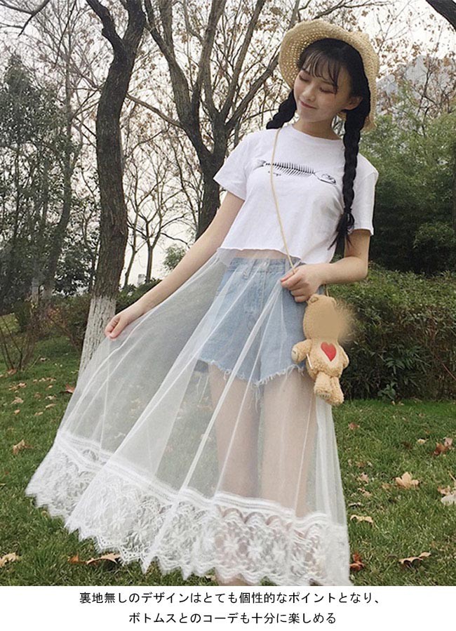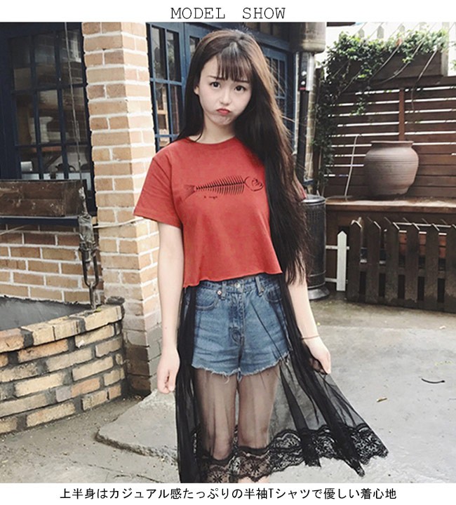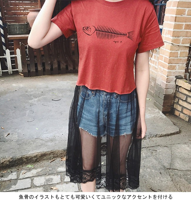 ワンピース レディース チュールスカート 半袖 ロングワンピ ゆったり 女性用 Tシャツワンピ 夏物 レース裾 マキシ丈ワンピースレディース用のワンピースが登場上半身はカジュアル感たっぷりの半袖Tシャツで優しい着心地魚骨のイラストもとても可愛いくてユニックなアクセントを付けるスカート部分は糖度高めの透明チュール素材を使い、甘さもレトロ感もたっぷり裏地無しのデザインはとても個性的なポイントとなり、ボトムスとのコーデも十分に楽しめるカラー:レッド ホワイト ブラック素材 ポリエステルサイズ(cm) M L XL 2XLM 総丈111 スカート長さ67 バスト96 肩幅44L 総丈114 スカート長さ68 バスト100 肩幅46XL 総丈116 スカート長さ69 バスト104 肩幅482XL 総丈118 スカート長さ70 バスト108 肩幅50ご注意:※サイズは平置きサイズです。素人採寸ですので、若干の誤差がございます、ご了承ください。