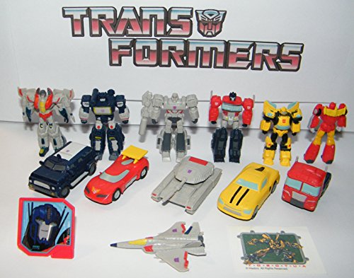 -. Title : Transformers Deluxe Plastic Figure Set of 14 Toy Kit with 12 Figures, Special Tattoo and ToyRing featuring Optimus P.R.Ime with 6 Transformer Figures and 6 Vehicles!