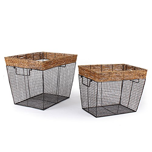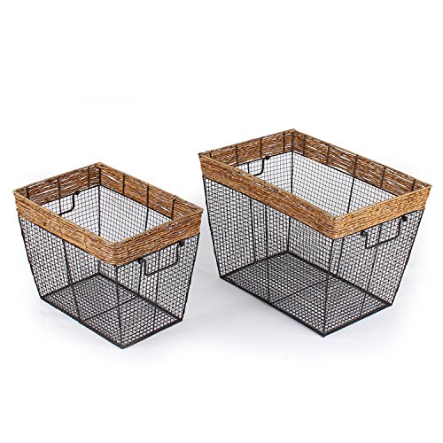 Studio : Adeco Publisher : Adeco Binding : Kitchen Product Description These simple, stylish baskets are the perfect containers for storage, laundry or decoration. A set of two useful, rectangular sizes, they feature a delicate, crimped mesh body and seagrass-twisted rim. The sturdy iron handles fold down to make the baskets easy to tuck away in a corner.Not only do they suit the kitchen, bathroom, spare bedroom, or livingroom, they also make a wonderful wedding, anniversary or housewarming gift. That is, if you can bring yourself to give them away! 0