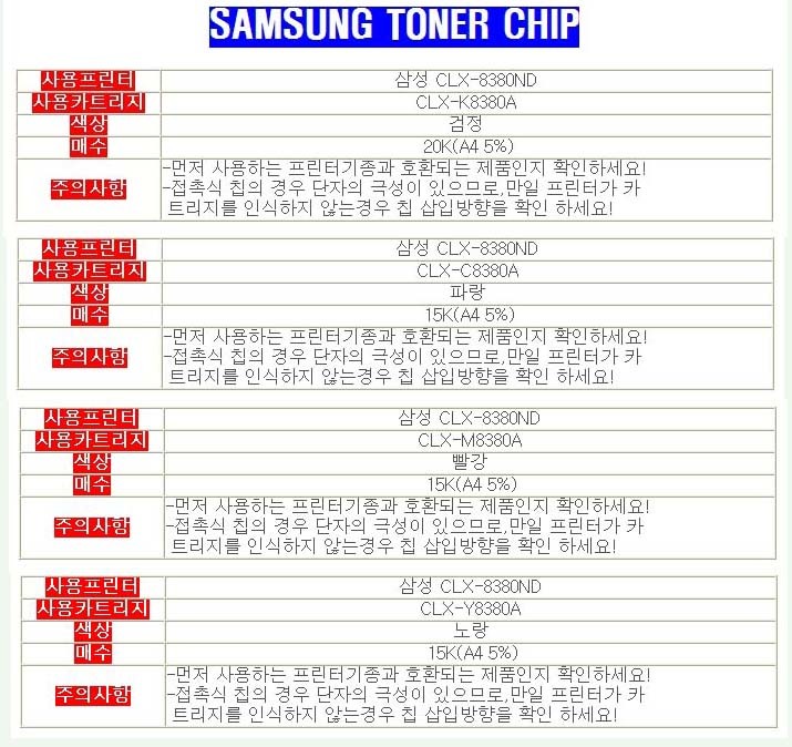 Color Samsung CLX-8380DN Black, Blue, Red, Yellow